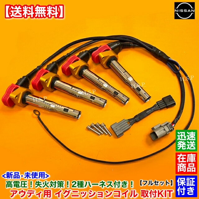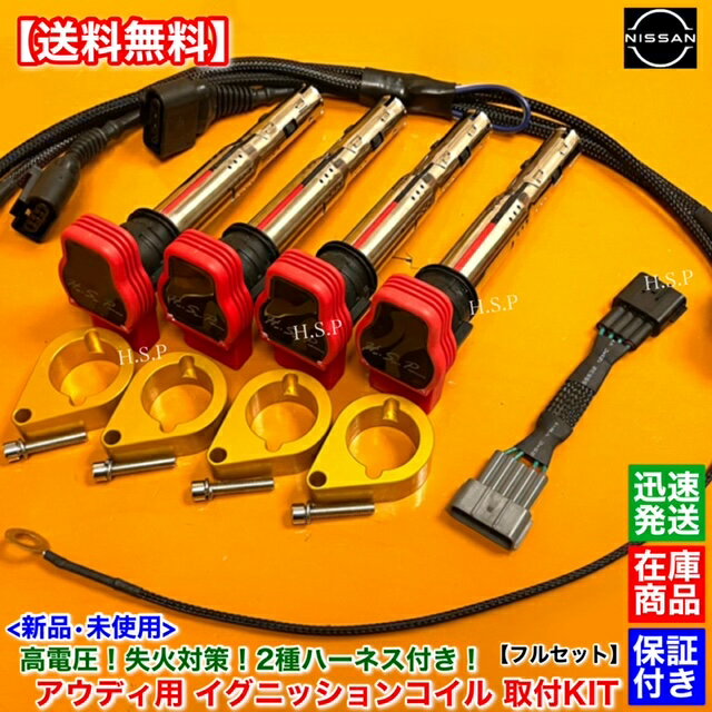 ゴールド シルビア S13 S14 180SX SR20DET アウディ R8 イグニッションコイル インストール フルSET パワトラレス ハーネス 付属 金色 SR20 変換 取付 高馬力対応 高電圧 ミスファイア 失火 防止 改造に!